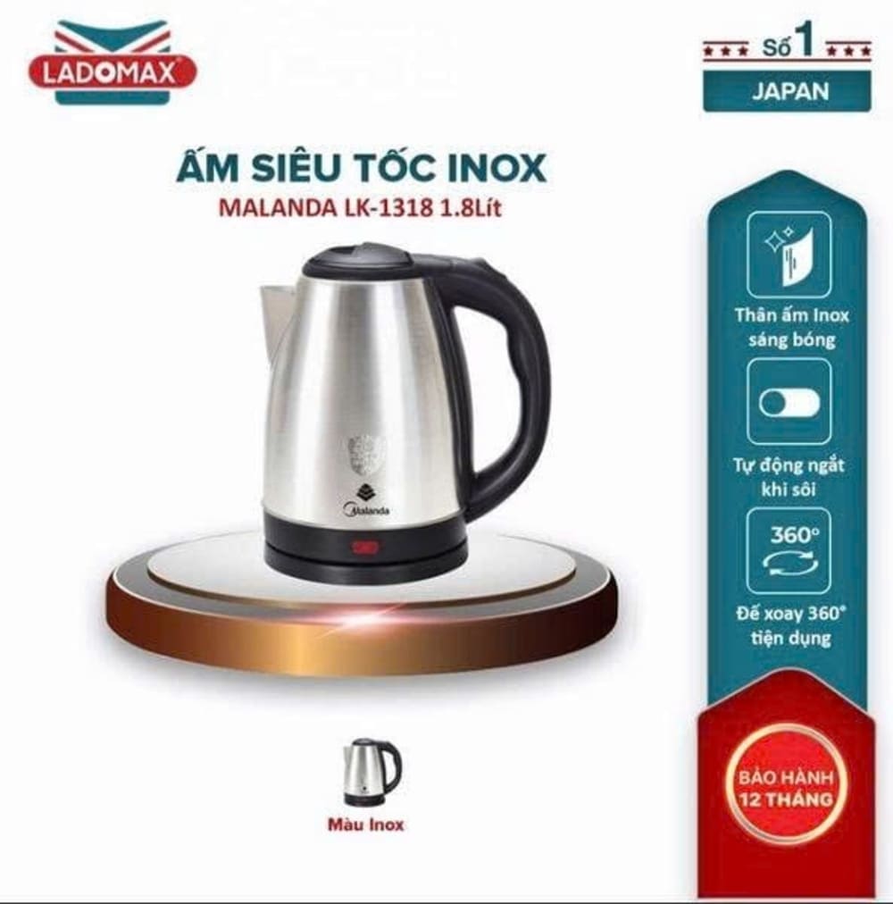 Tên sản phẩm: Ấm siêu tốc inox Malanda Thái Lan 1.8 Lít LK-1318