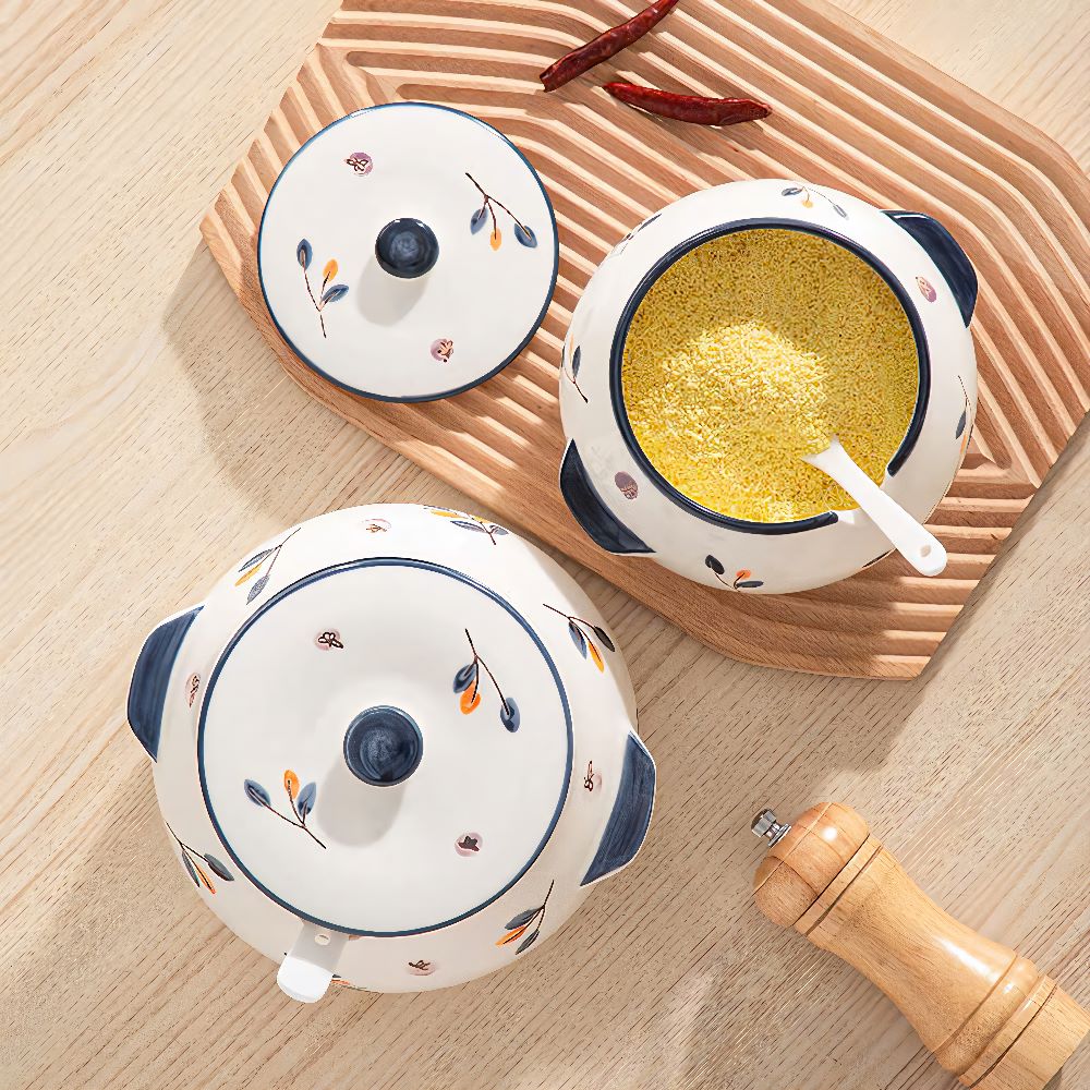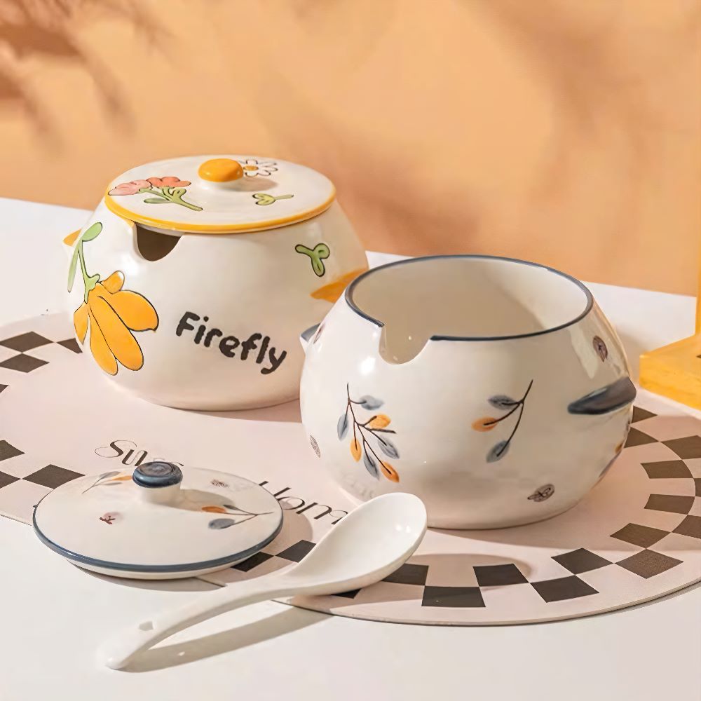 Thìa gốm đồng bộ tiện dụng: Đi kèm thìa gốm cùng màu sắc, thiết kế, giúp múc lượng gia vị vừa đủ, không bị nhỏ giọt và luôn giữ căn bếp sạch sẽ.