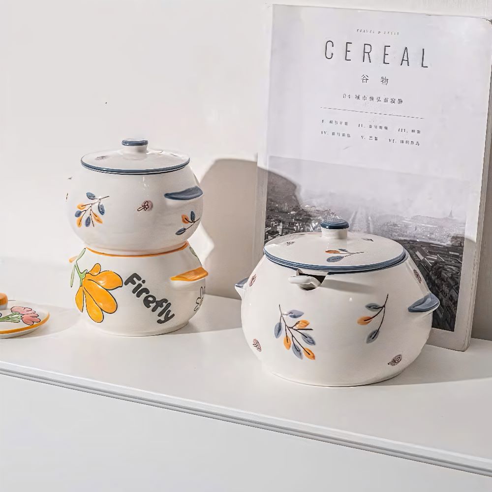 Vật trang trí cho không gian bếp: Ngay cả khi không sử dụng, âu mỡ với thiết kế hoa lá vẫn là món đồ trang trí đáng yêu cho kệ bếp hoặc bàn ăn.