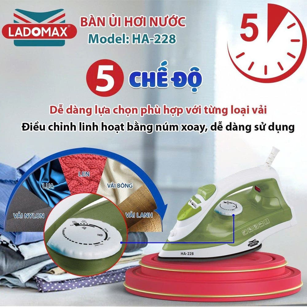 Tên sản phẩm: Bàn ủi hơi nước Ladomax HA-228 cao cấp