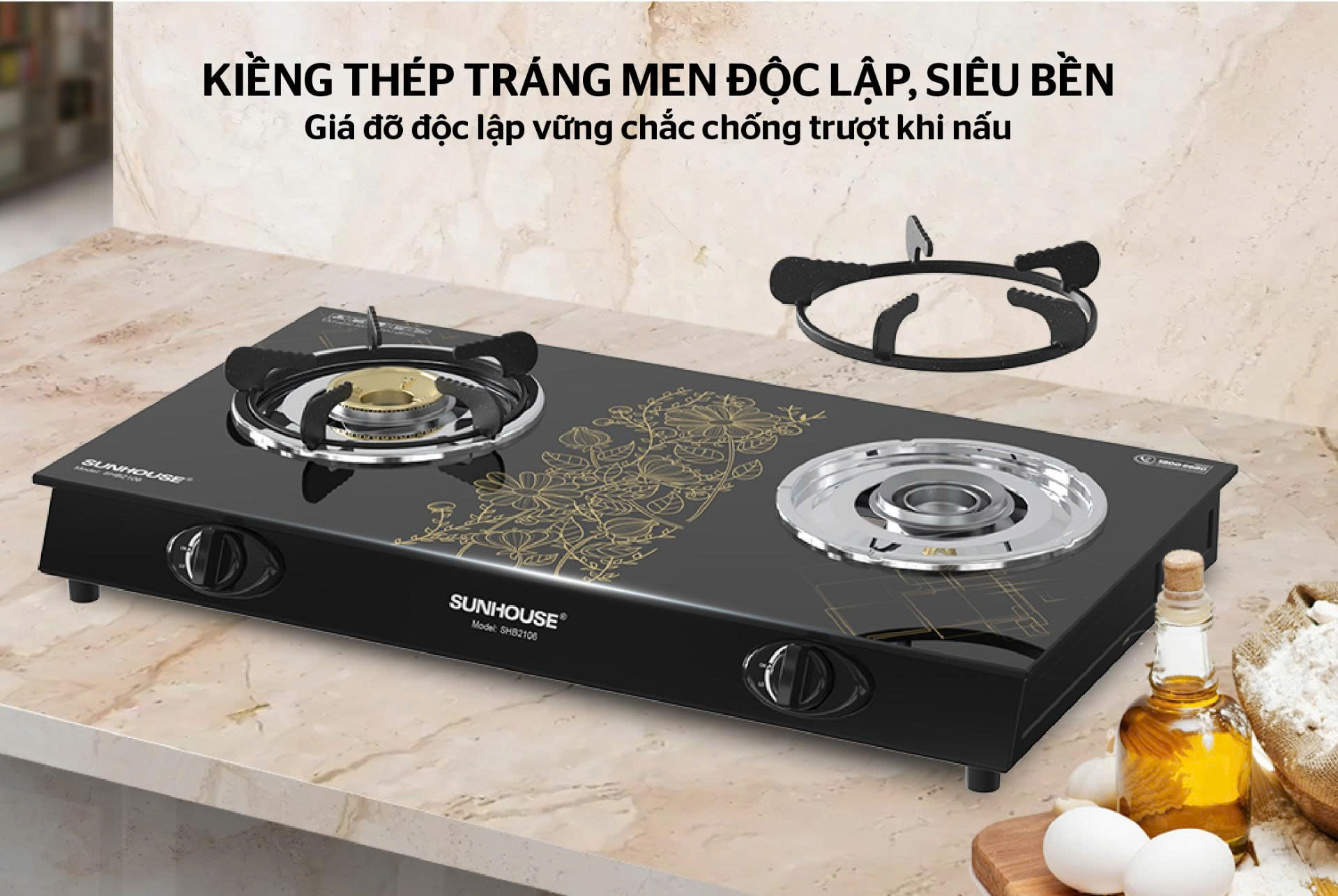 - Kiềng bếp: Gang đúc chống trượt, giữ ổn định nồi chảo