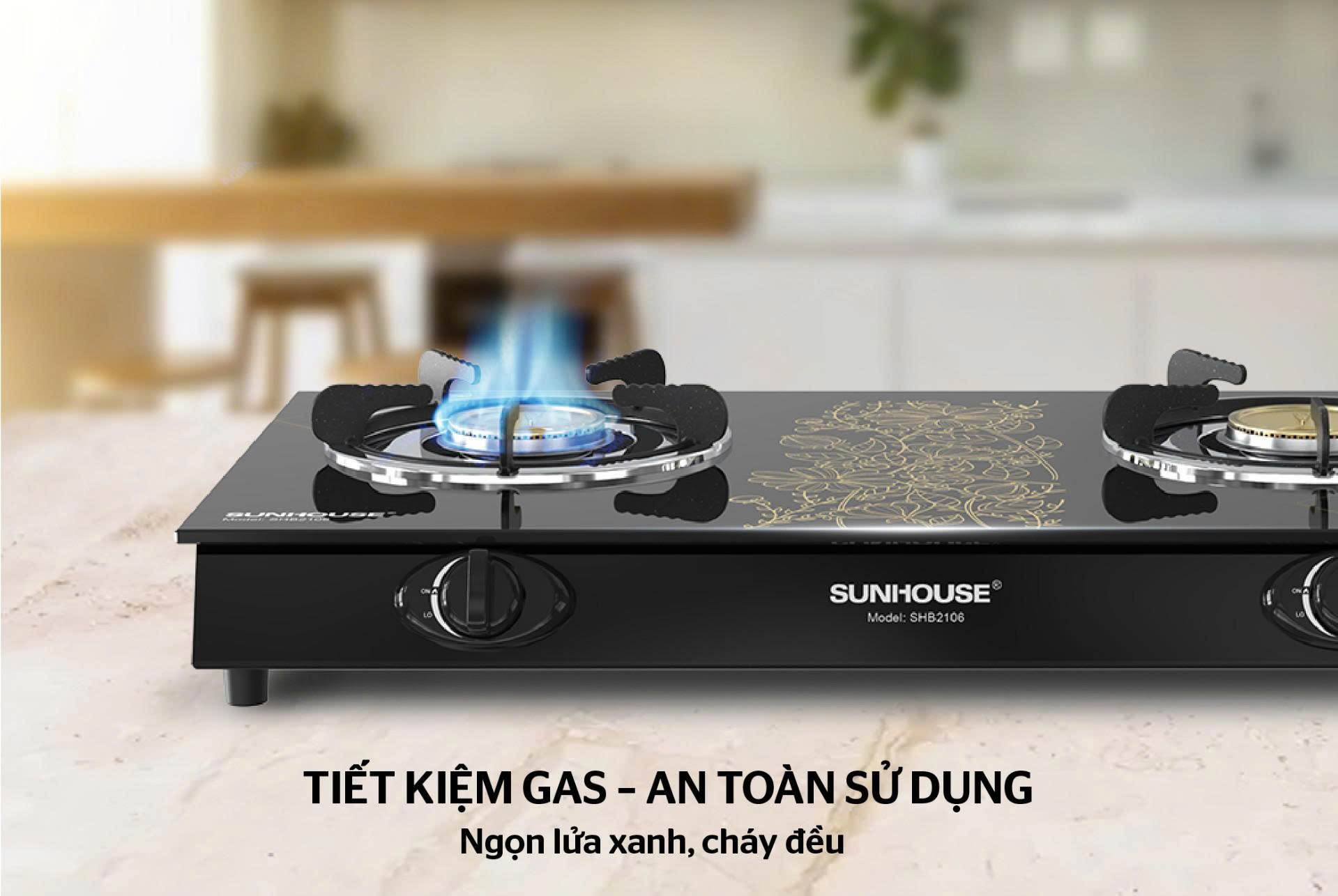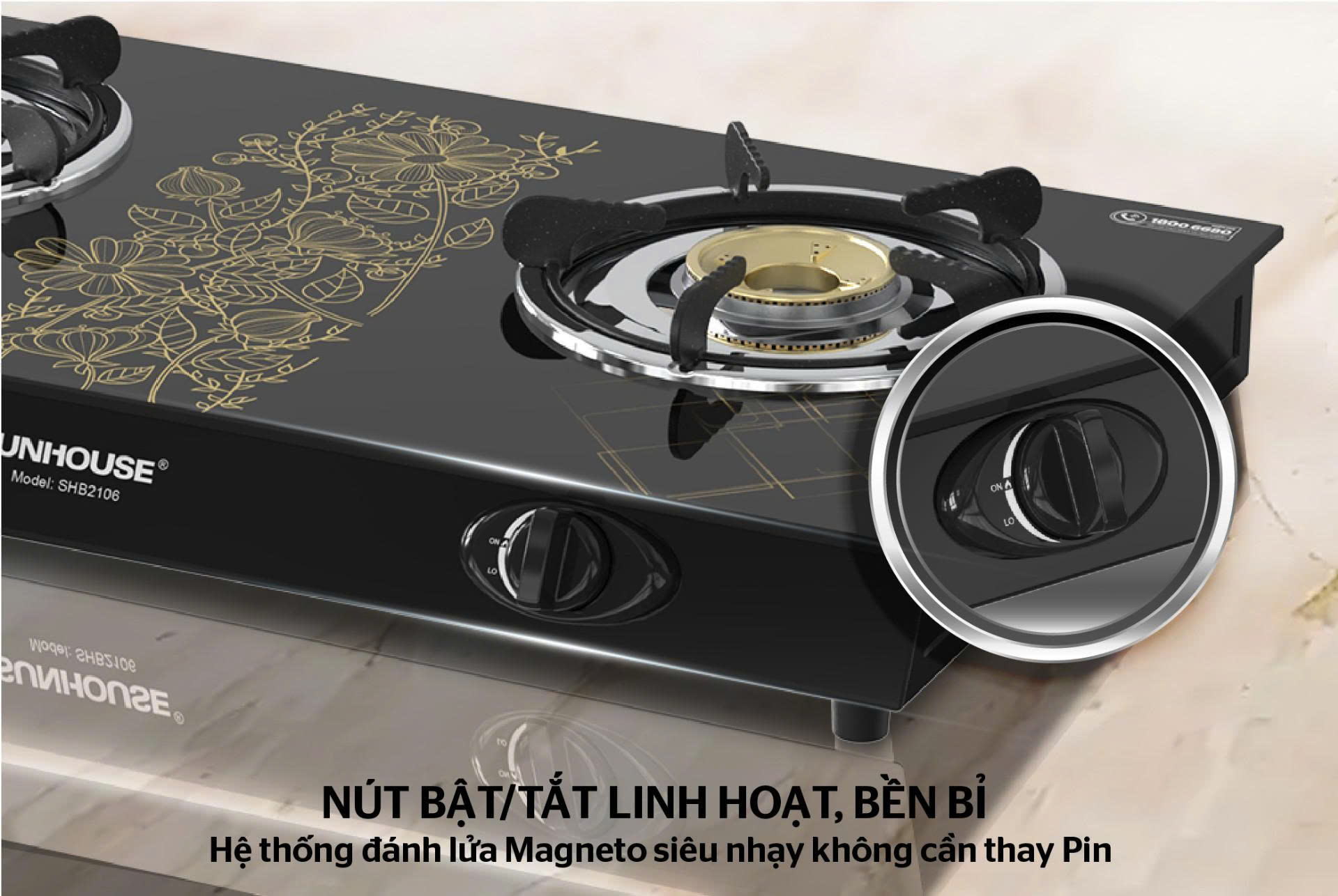 - Tên sản phẩm: Bếp gas dương kính SUNHOUSE SHB2106