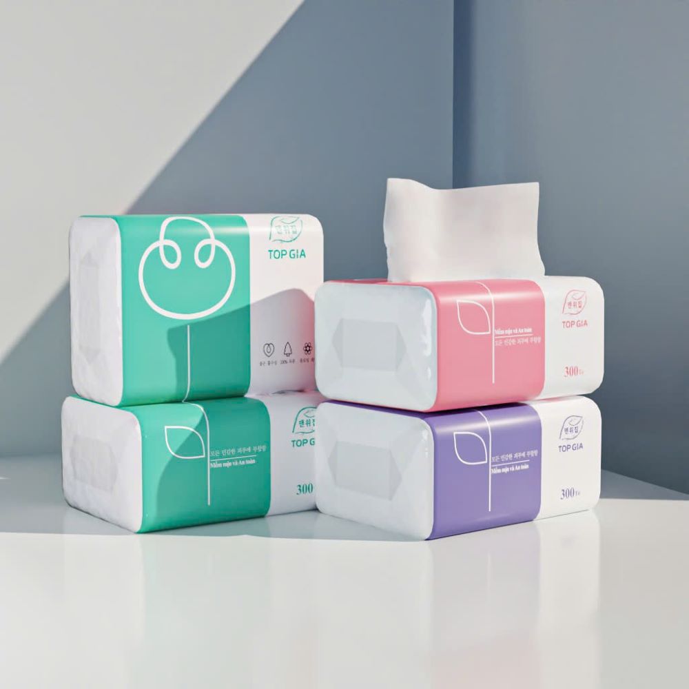 Giữ giấy luôn sạch sẽ: Bao bì riêng biệt cho từng gói nhỏ giúp bảo vệ giấy ăn khỏi bụi bẩn, độ ẩm và các tác nhân bên ngoài, đảm bảo vệ sinh khi sử dụng.