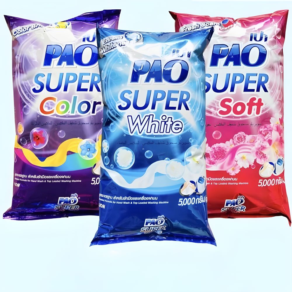 Bột giặt PAO Thái Lan túi 5kg giúp làm sạch quần áo hiệu quả, loại bỏ vết bẩn cứng đầu và mang lại hương thơm dễ chịu lâu dài. Công thức đặc biệt phù hợp cho cả giặt tay và giặt máy, giữ sợi vải bền đẹp, mềm mại sau mỗi lần giặt.