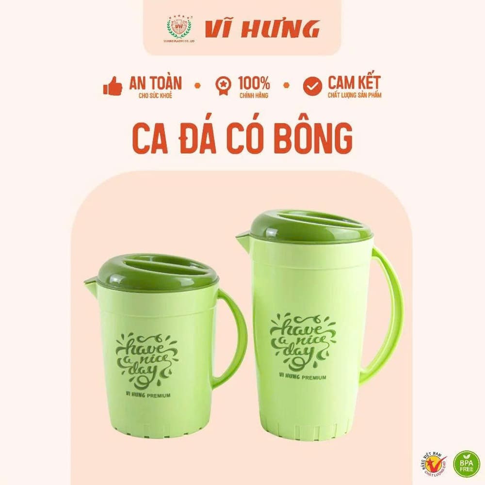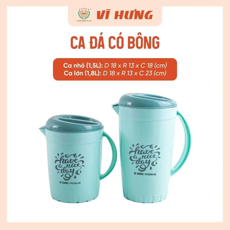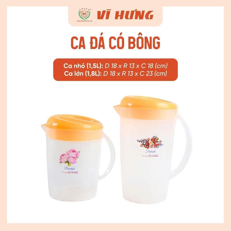 Tên sản phẩm: Ca đá có bông Vĩ Hưng 1.8L 3704