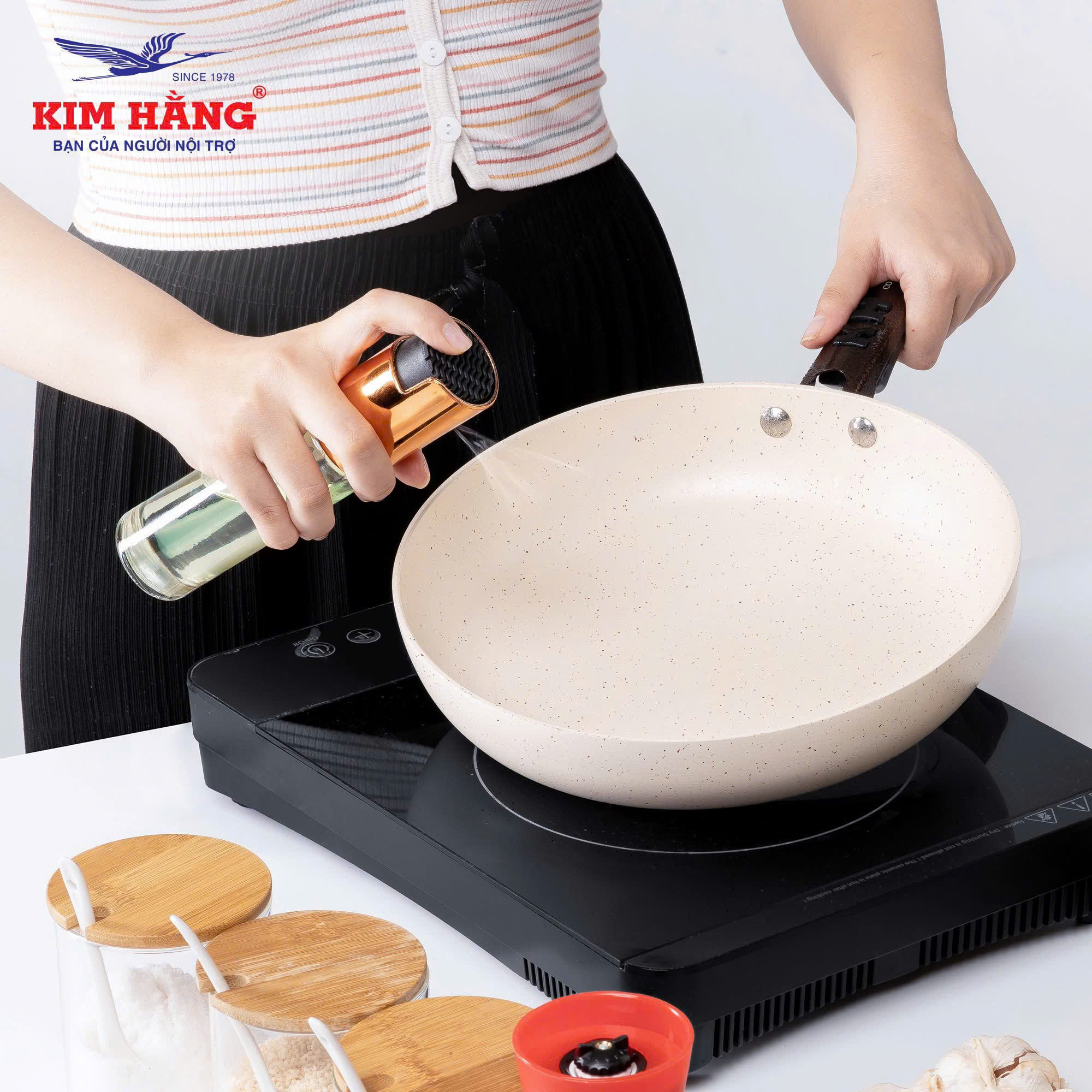 Tay cầm: Nhựa cách nhiệt, chắc chắn, dễ cầm