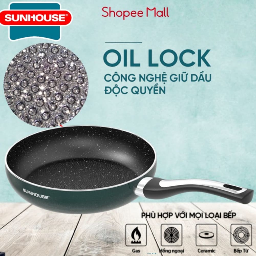 Chảo chống dính vân đá đáy từ Sunhouse ECO SHM18 Plus là lựa chọn nhỏ gọn, tiện lợi cho bữa ăn nhanh, giúp nấu ăn dễ dàng, hạn chế dầu mỡ và sử dụng được trên bếp từ hiện đại.