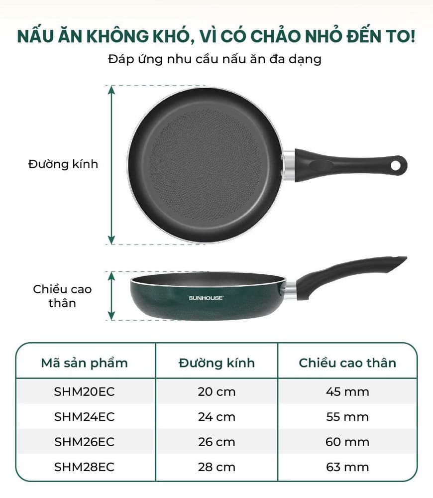 Bạn đang tìm một chiếc chảo vừa chống dính tốt, bền đẹp lại dùng được cho bếp từ? Chảo chống dính vân đá Sunhouse ECO SHM24 Plus chính là lựa chọn lý tưởng cho mọi căn bếp hiện đại, giúp nấu ăn nhanh gọn và an toàn sức khỏe.