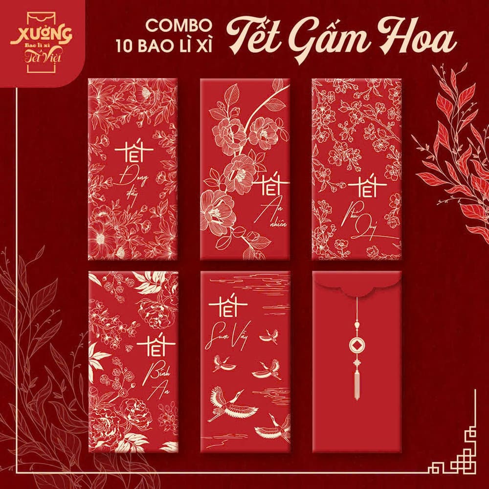 Tên sản phẩm: Combo 10 bao lì xì Tết gấm hoa cao cấp