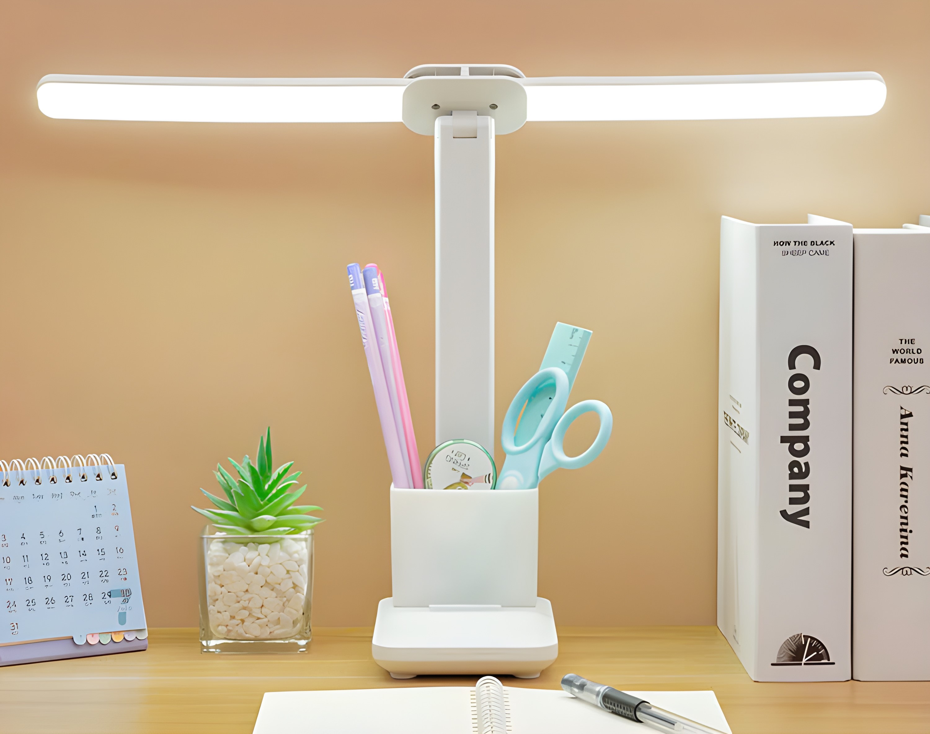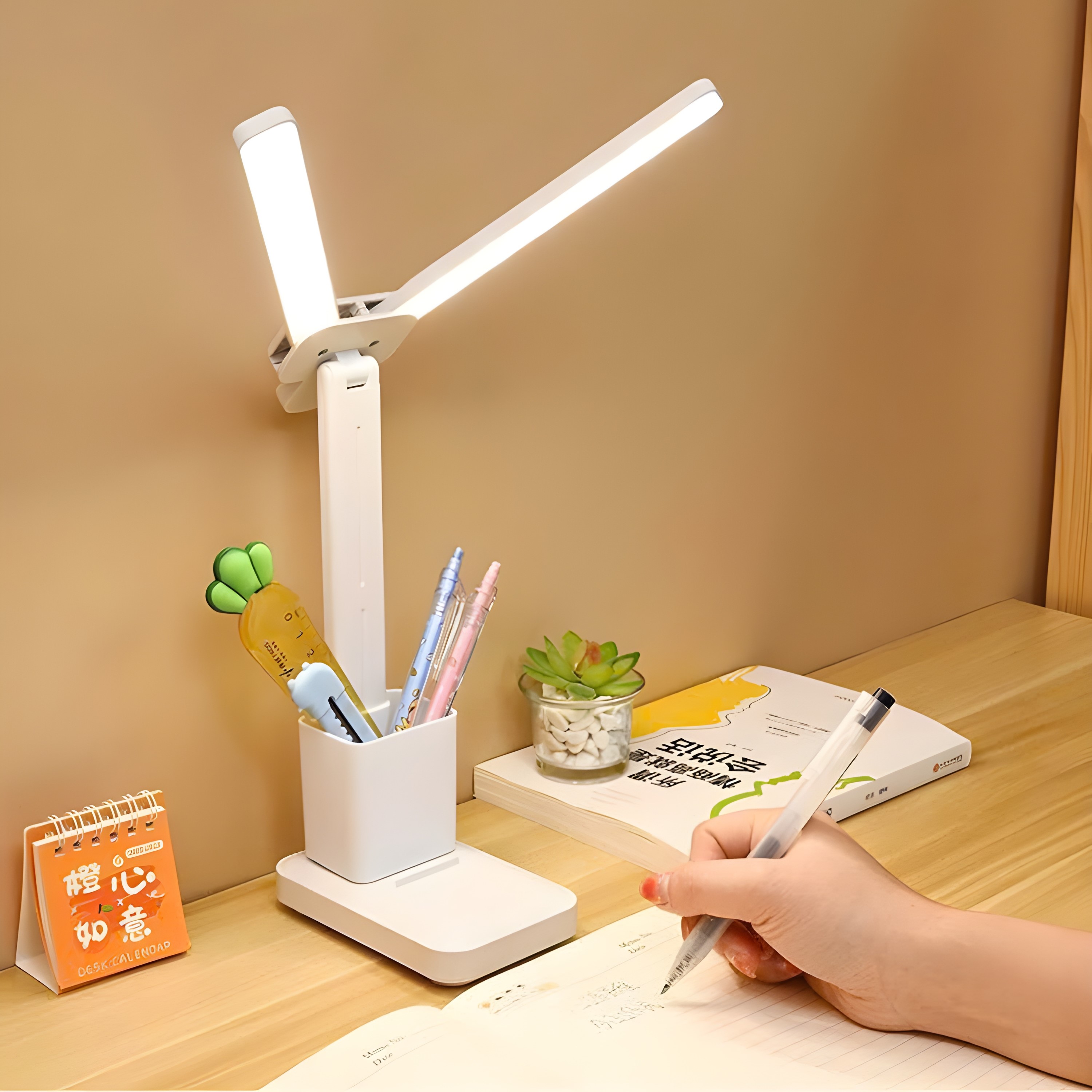 Đèn Học Để Bàn Chống Cận Thị 2 Bóng Gấp Gọn Kèm Hộp Bút - Bảo Vệ Thị Lực Toàn Diện