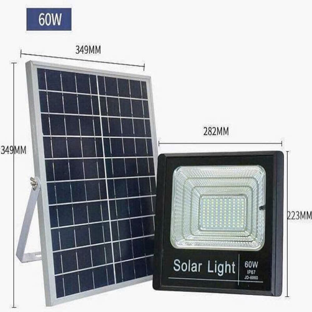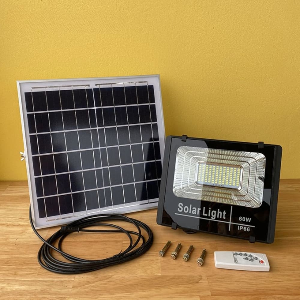 Thắp sáng không gian ngoài trời hiệu quả và tiết kiệm điện với Đèn pha năng lượng mặt trời 60W. Sử dụng năng lượng mặt trời thân thiện môi trường, dễ dàng lắp đặt, không cần đi dây phức tạp. Thiết kế bền bỉ, chống nước, phù hợp chiếu sáng sân vườn, hiên nhà, lối đi hoặc trang trại.