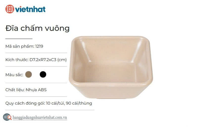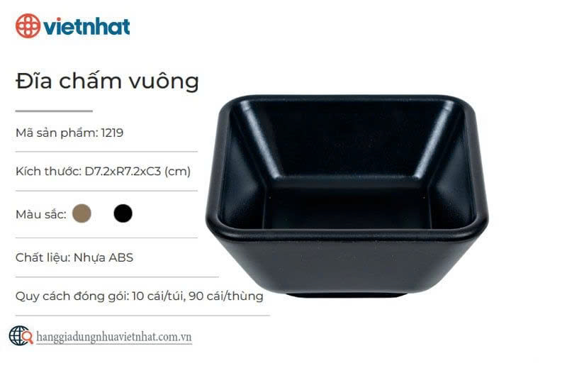 Đĩa chấm 1 ngăn nhựa Việt Nhật 1219, Nâu, Đen, Trắng Chén đựng nước chấm, nước sốt, Bát gia vị dày đẹp cực bền