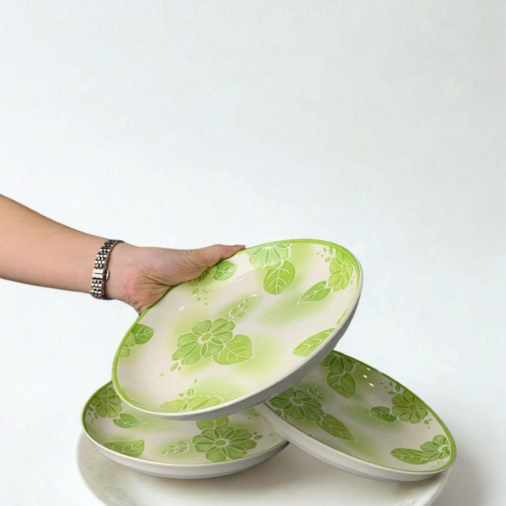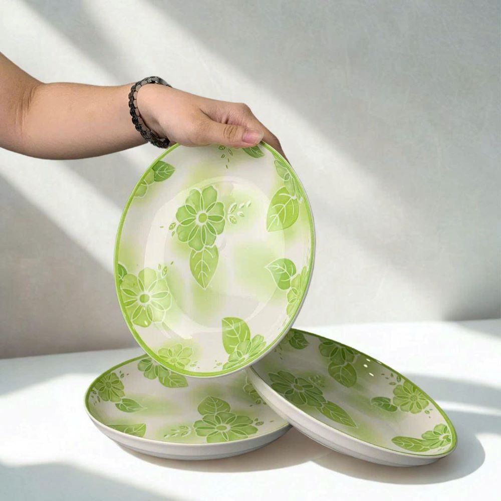 Đĩa sứ trắng họa tiết hoa lá xanh ngọc số 8 - Lựa chọn hoàn hảo để trang trí bàn ăn sang trọng, mang đến vẻ đẹp tươi mát với họa tiết thiên nhiên và chất lượng sứ cao cấp đảm bảo.