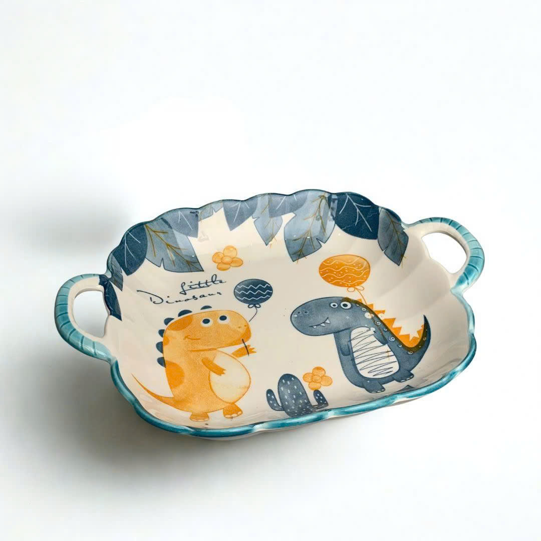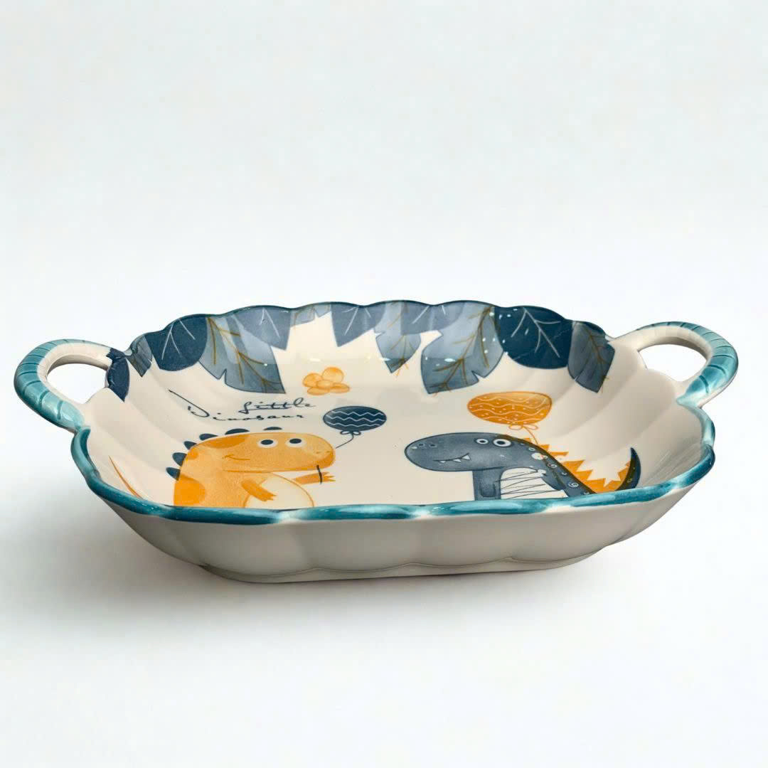 Đĩa Sứ Trắng Vuông Họa Tiết Khủng Long Tinh Nghịch — Chuẩn Sỉ Tại Linh Kiện Khánh Nhân