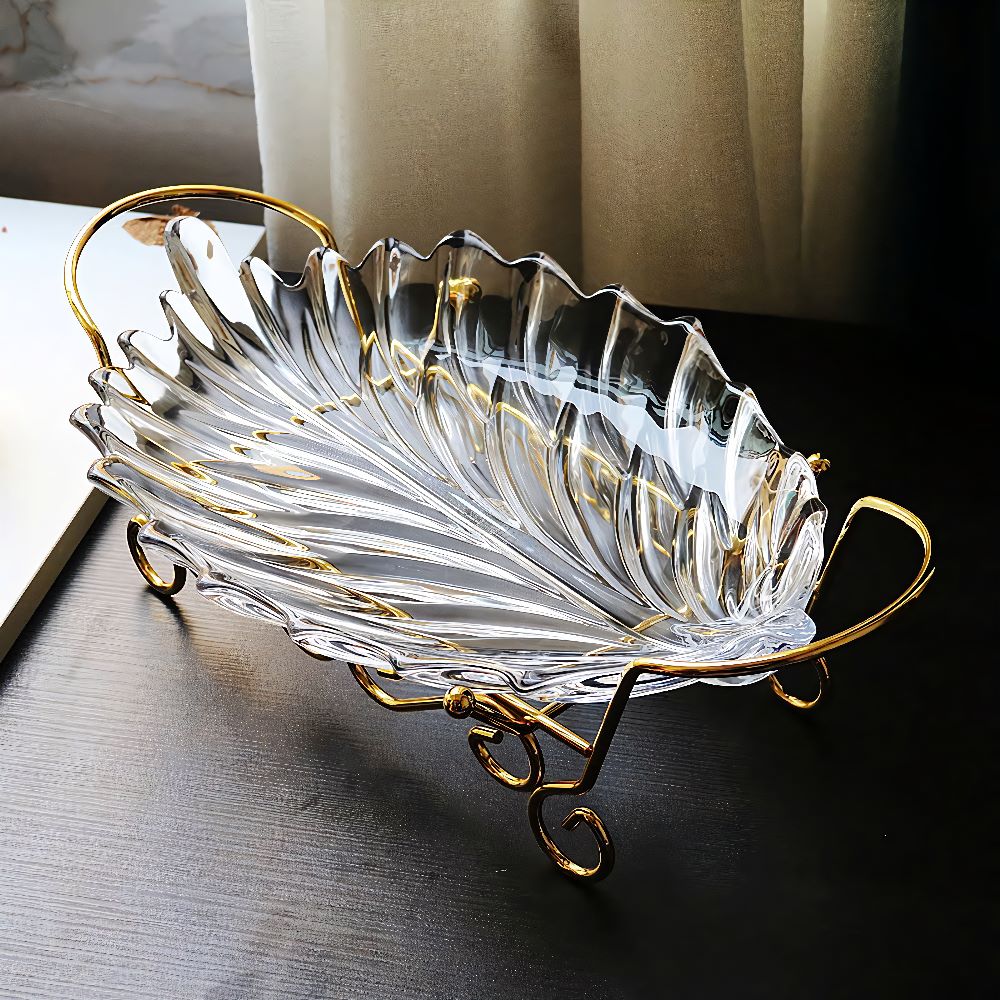 Đựng trái cây và kẹo: Thiết kế có độ sâu vừa phải cho phép đựng trái cây tươi, kẹo, chocolate hoặc các món ăn nhẹ một cách sang trọng. Đĩa thủy tinh trang trí này không chỉ bảo quản thực phẩm mà còn làm tăng giá trị thẩm mỹ cho bữa tiệc.