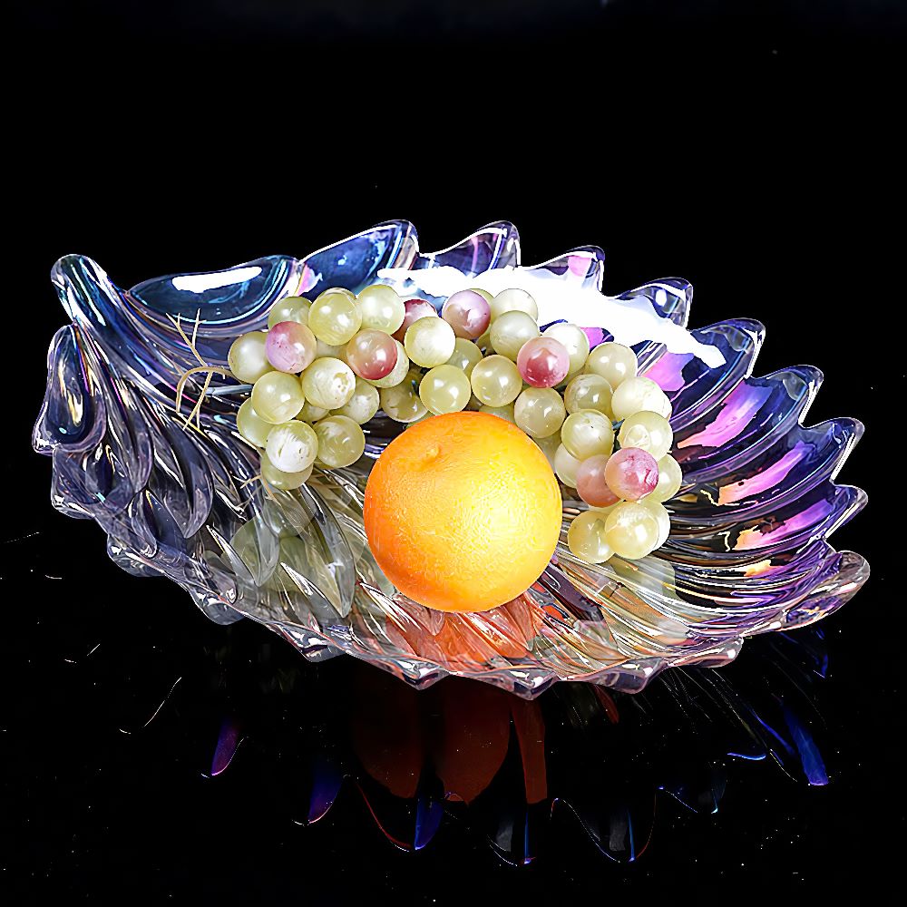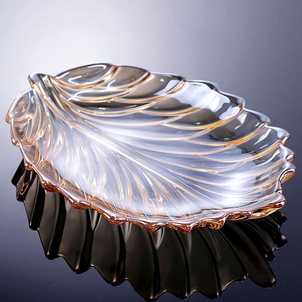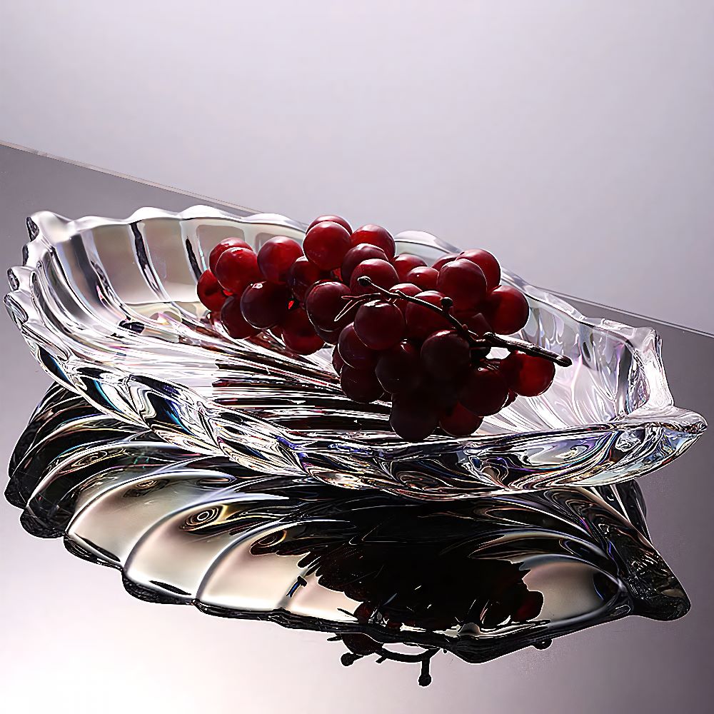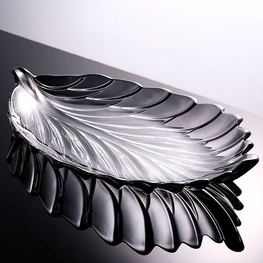 Trang trí phòng khách: Đĩa thủy tinh hình lá là điểm nhấn hoàn hảo cho bàn trà, kệ tivi hoặc tủ trưng bày. Vẻ đẹp tinh tế của sản phẩm sẽ nâng tầm không gian sống và tạo ấn tượng tốt với khách khứa.