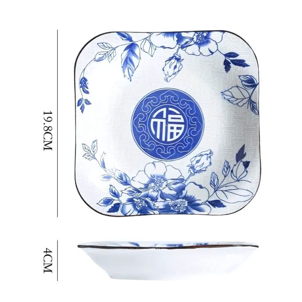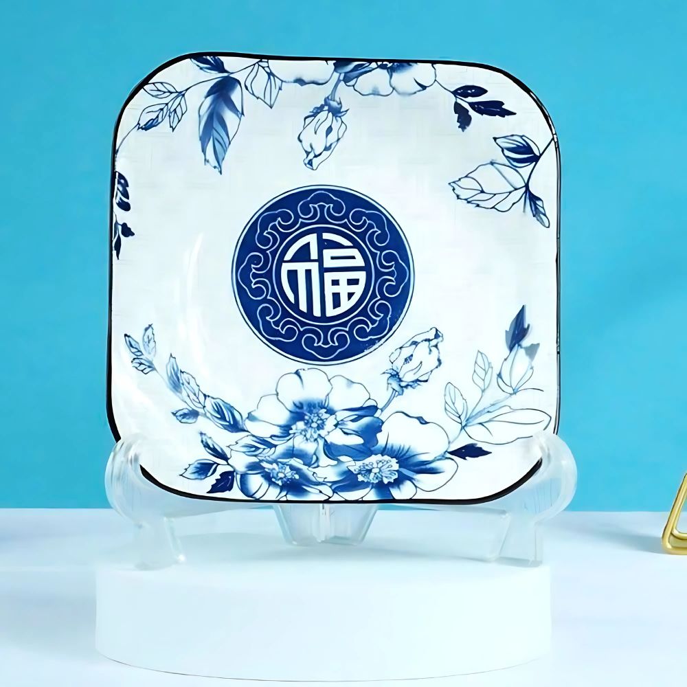 Tên sản phẩm: Đĩa vuông gốm sứ 9 inch Phúc Mãn Đường