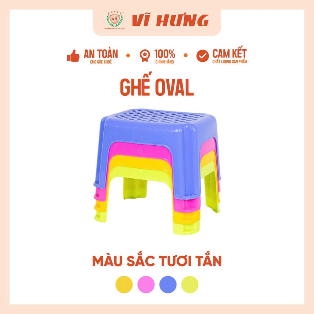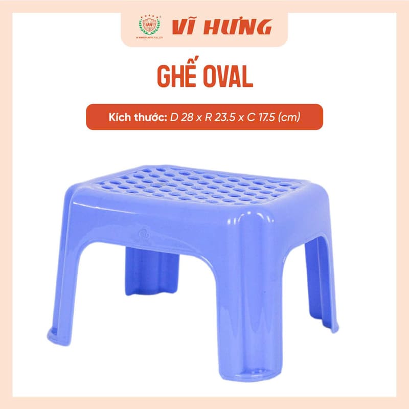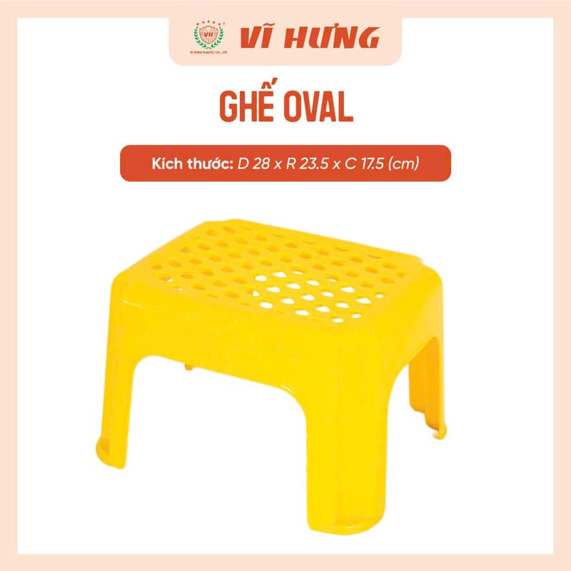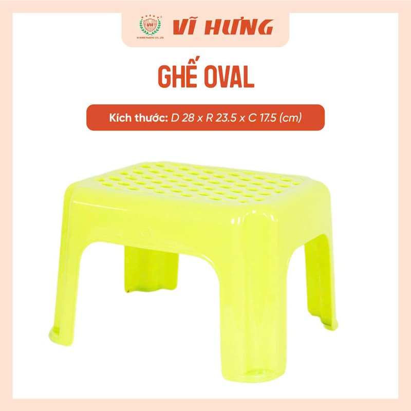 Ghế nhựa lùn Oval VH 3303 thiết kế bo tròn hiện đại, nhỏ gọn, phù hợp sử dụng trong nhiều không gian như gia đình, quán ăn hay quán nước. Chất liệu nhựa bền chắc, ngồi thoải mái và dễ di chuyển.