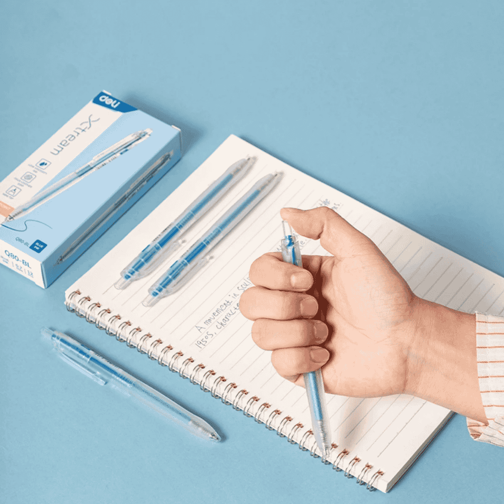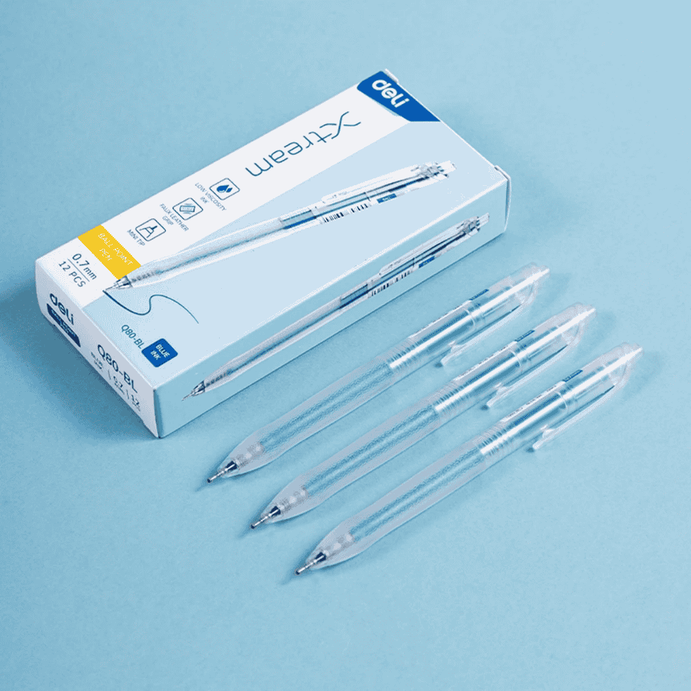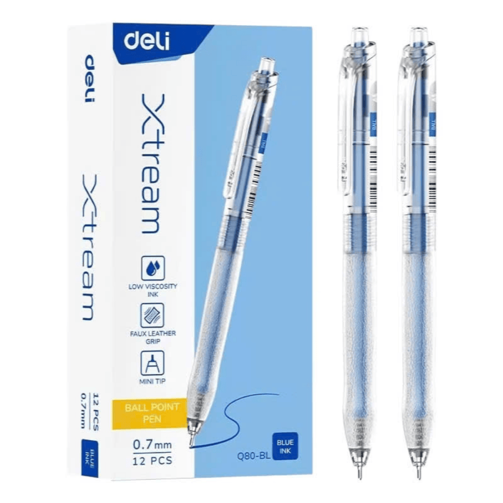 Hộp 12 cây bút bi dầu Deli EQ80-BL với ngòi 0.7mm cho nét chữ thanh thoát, mực ra đều, nhanh khô, không lem. Thiết kế gọn nhẹ, dễ cầm nắm, phù hợp cho học tập, làm việc văn phòng và ghi chép hàng ngày.