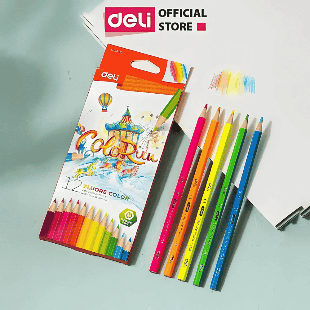 Bộ 12 cây bút chì màu Deli EC130-12 là lựa chọn hoàn hảo cho học sinh, sinh viên và người yêu hội họa. Với đầu chì 3mm chắc chắn, màu sắc tươi sáng, dễ tô phủ, sản phẩm giúp tạo nên những bức tranh sống động và sáng tạo hơn mỗi ngày.