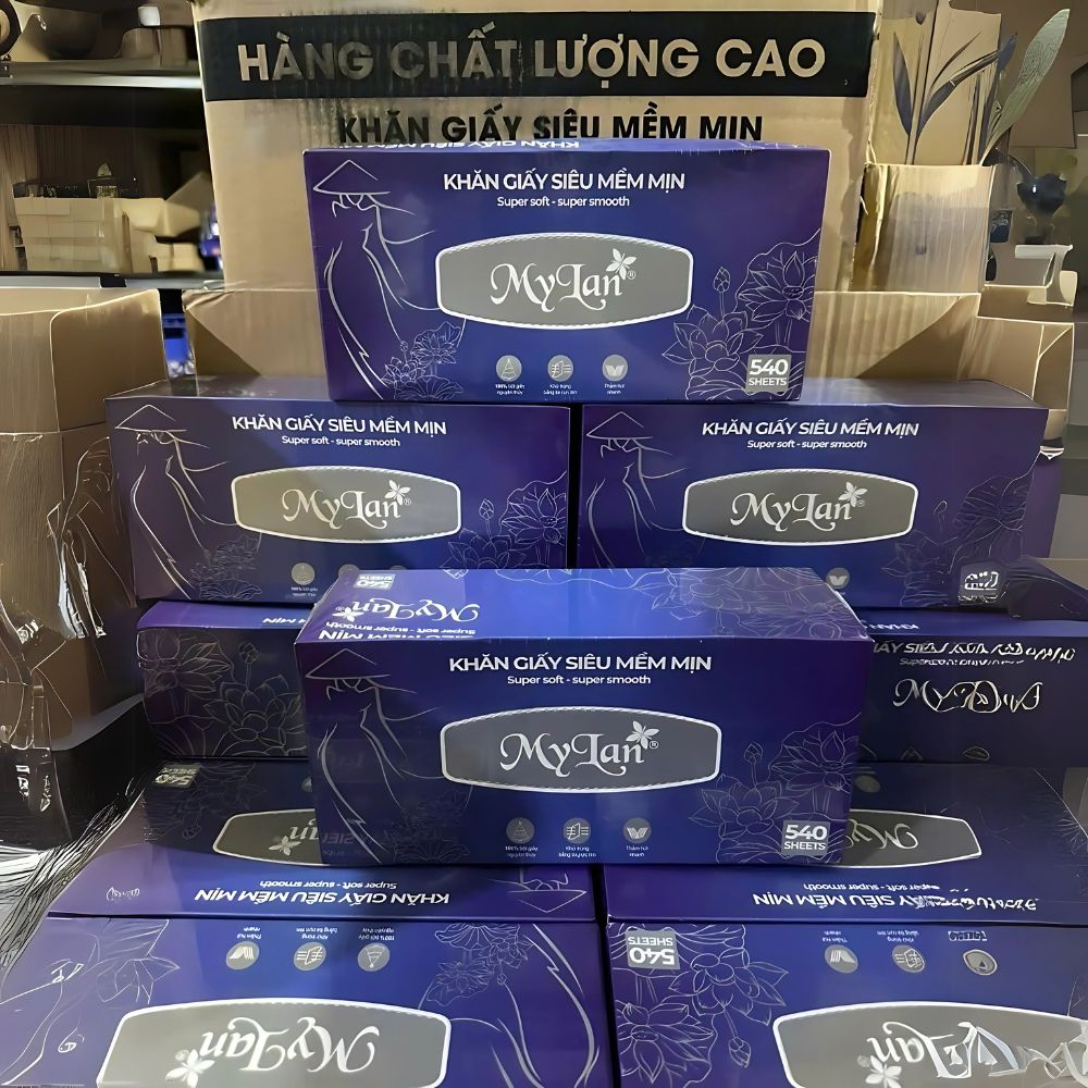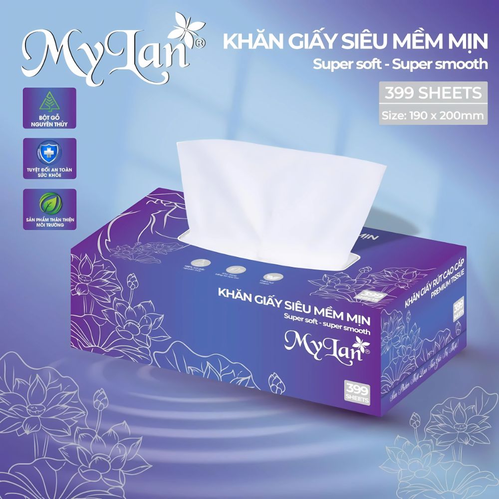 Hộp khăn giấy rút siêu mềm mịn MyLan 399 tờ — sản phẩm tiện dụng, mềm mại, hấp thu ẩm tốt — được phân phối chính hãng bởi tổng kho sỉ gia dụng Linh Kiện Khánh Nhân tại TP.HCM. Giấy MyLan luôn đồng hành cùng nhu cầu vệ sinh cá nhân, chăm sóc sức khoẻ gia đình, văn phòng, nhà hàng, khách sạn… — tiện dụng mà vẫn đảm bảo chất lượng.