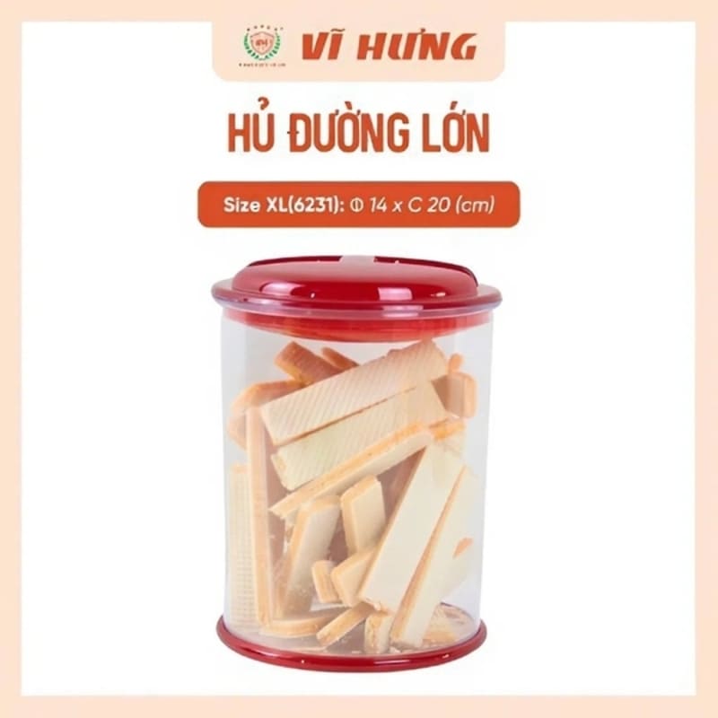 Hũ đựng đường nắp kín bảo quản thực phẩm size trung Vĩ Hưng 6226 là giải pháp tiện lợi để bảo quản đường, bột, hạt hay các thực phẩm khô khác, giúp bếp luôn gọn gàng và sạch sẽ. Chất liệu nhựa cao cấp bền chắc, an toàn cho sức khỏe, nắp kín giúp chống ẩm, bụi bẩn và côn trùng, giữ thực phẩm luôn tươi ngon.