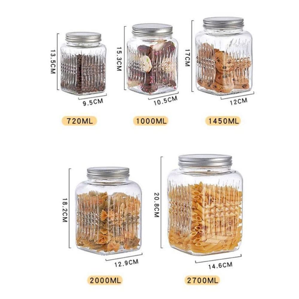 Hũ thủy tinh đựng thực phẩm nắp thiếc vặn tròn 1450ml là giải pháp lưu trữ thực phẩm an toàn, tiện lợi và thẩm mỹ cho mọi gian bếp. Với dung tích lớn, hũ giúp bảo quản đa dạng thực phẩm như gạo, ngũ cốc, hạt, bánh kẹo hay đồ handmade. Nắp thiếc vặn kín khít chống ẩm, chống mùi, giữ nguyên hương vị và độ giòn của thực phẩm trong thời gian dài.