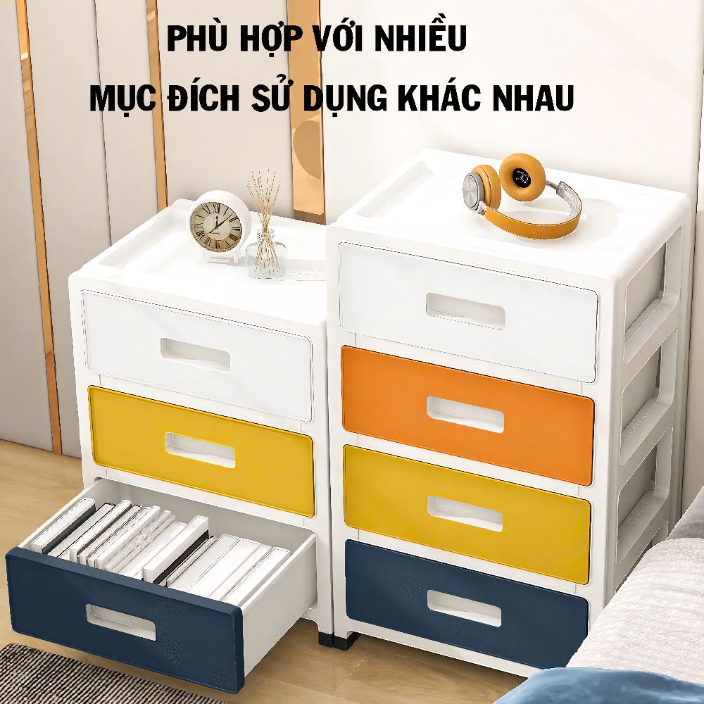 Kệ tủ nhựa mini 4 tầng giúp sắp xếp đồ đạc gọn gàng – tiết kiệm không gian – dễ sử dụng trong phòng ngủ, nhà bếp hoặc phòng tắm. Thiết kế có ngăn kéo tiện lợi, phù hợp đựng nhiều vật dụng nhỏ, mang lại sự ngăn nắp và thẩm mỹ cho không gian sống. 🧺✨