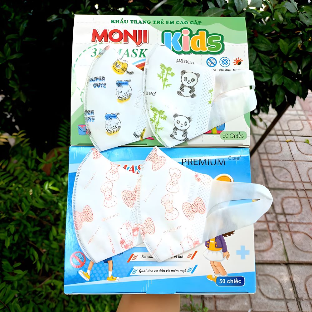 Khẩu trang thiết kế đơn giản, dễ đeo và tháo, giúp trẻ có thể tự đeo mà không cần sự hỗ trợ của người lớn. Điều này đặc biệt hữu ích khi trẻ ở trường học hoặc đi chơi với bạn bè.