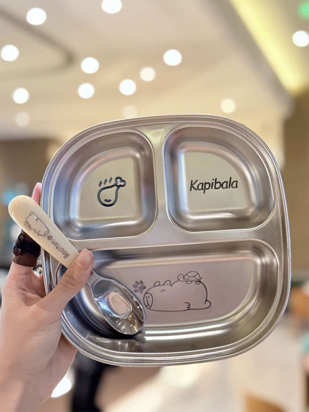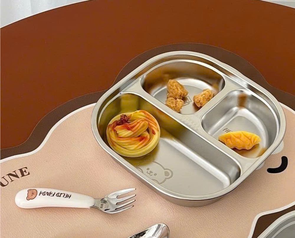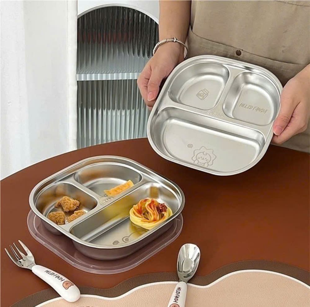 Tên sản phẩm: Khay cơm inox 3 ngăn kèm muỗng cho bé cao cấp