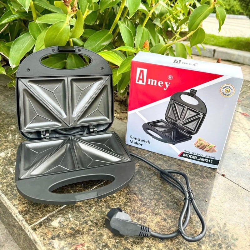 Thưởng thức bữa sáng nóng giòn, nhanh gọn chỉ trong vài phút với Máy nướng bánh mì Sandwich Amey AM011. Thiết kế hiện đại, nhỏ gọn, dễ sử dụng, giúp bạn nướng bánh mì sandwich vàng đều, giòn thơm. Bề mặt chống dính cao cấp, dễ vệ sinh, an toàn cho sức khỏe, phù hợp gia đình bận rộn hay nhân viên văn phòng muốn bữa ăn tiện lợi.