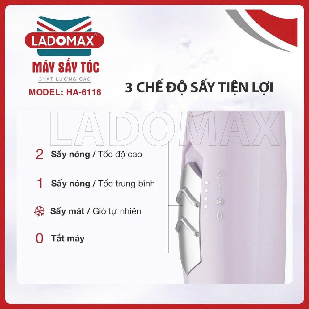 Tên sản phẩm: Máy sấy tóc gấp gọn Ladomax HA-6116 tiện dụng
