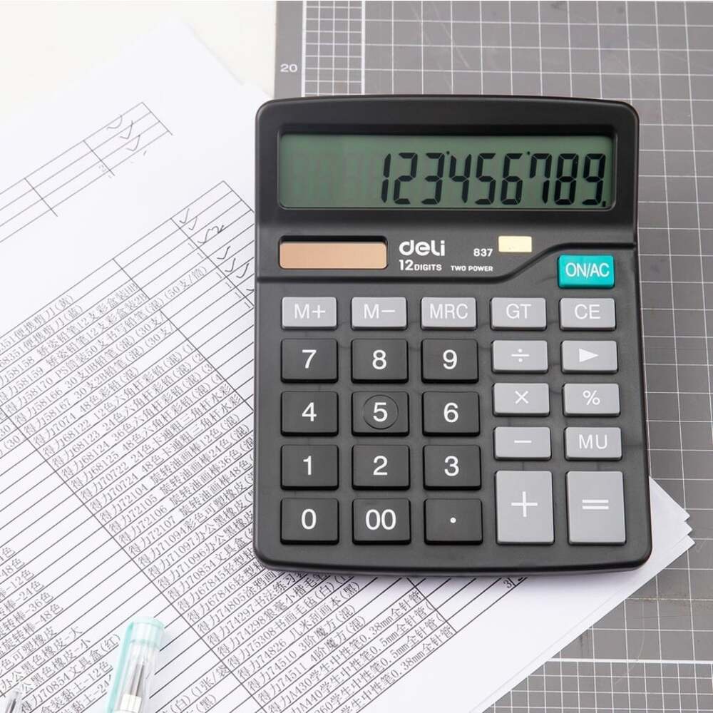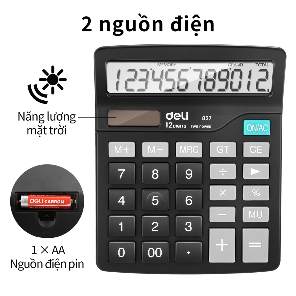 Tên sản phẩm: Máy tính để bàn Deli 12 số màu đen truyền thống E837