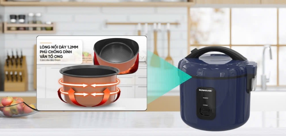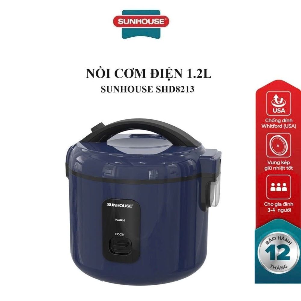 Nồi cơm điện Sunhouse SHD8213 dung tích 1.2L giúp nấu cơm nhanh chín – dẻo ngon – giữ ấm lâu, phù hợp cho gia đình nhỏ 2–4 người. Thiết kế gọn gàng, dễ sử dụng với nút gạt cơ truyền thống, cực kỳ tiện lợi cho mọi căn bếp. 🍚✨