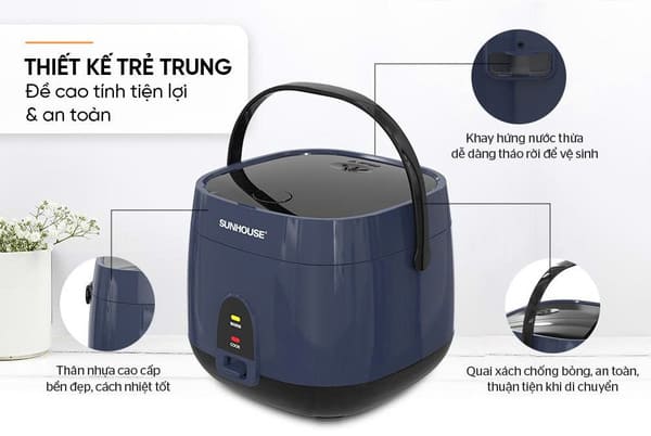 Bạn muốn nấu cơm ngon, nhanh chóng và tiện lợi cho gia đình? Nồi cơm điện Sunhouse SHD8611N dung tích 1.8L giúp nấu cơm chín đều, giữ ấm lâu, phù hợp cho gia đình từ 3–5 người. Thiết kế hiện đại, dễ sử dụng, đảm bảo an toàn khi nấu.