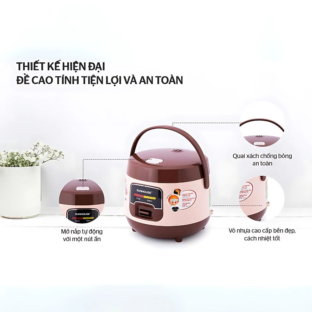 Với công suất 500W và mâm nhiệt lớn, nồi cơm điện Sunhouse SHD8208C giúp nấu cơm nhanh chín, giữ nguyên hương vị tự nhiên và không bị nhão hay khô. Sau khi cơm chín, chế độ giữ ấm tự động hoạt động ổn định, giúp cơm luôn nóng hổi trong suốt nhiều giờ.