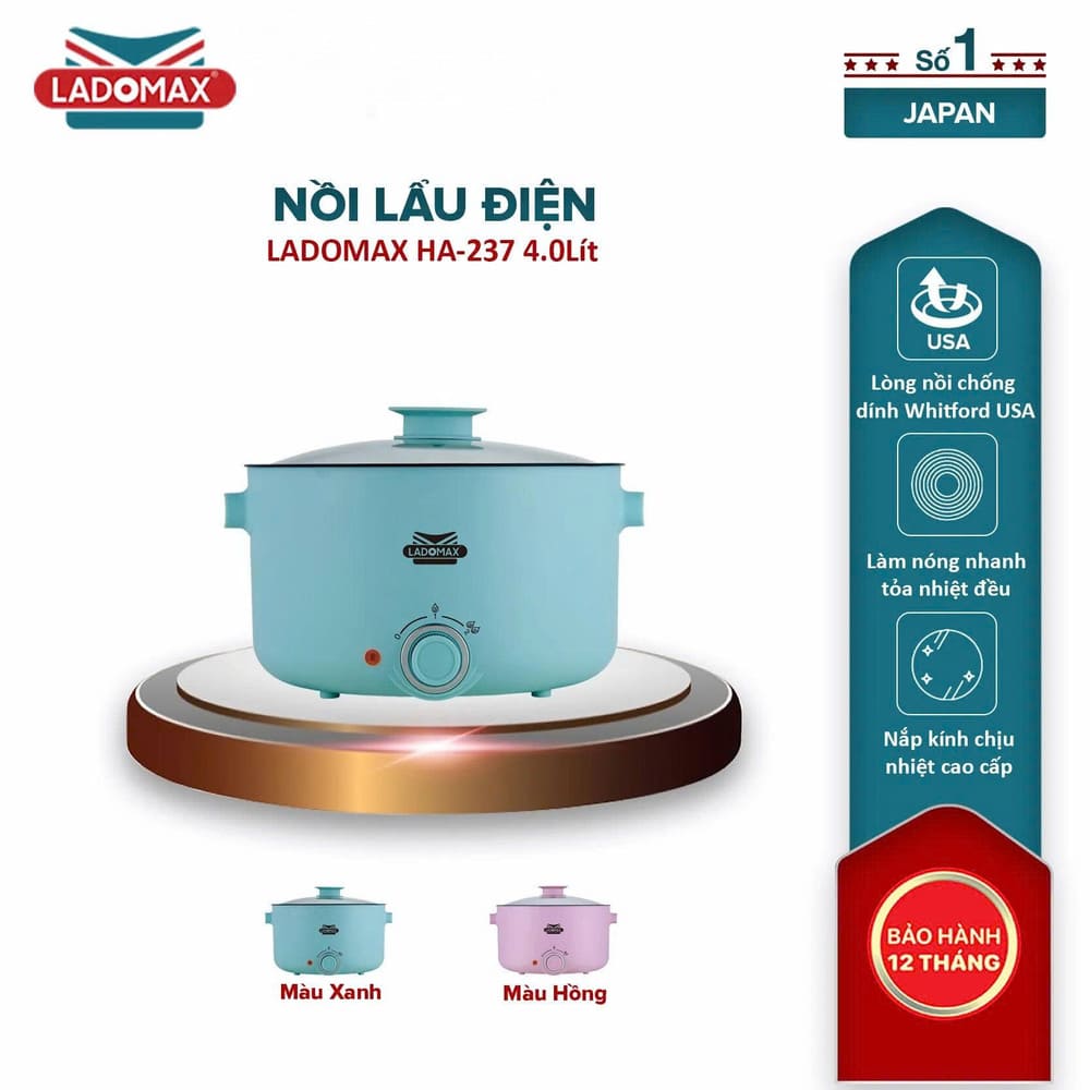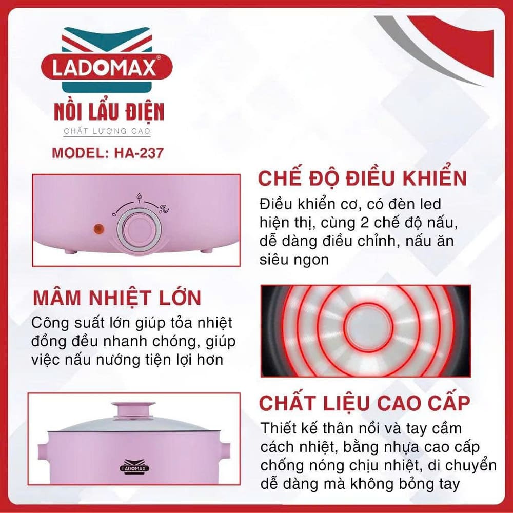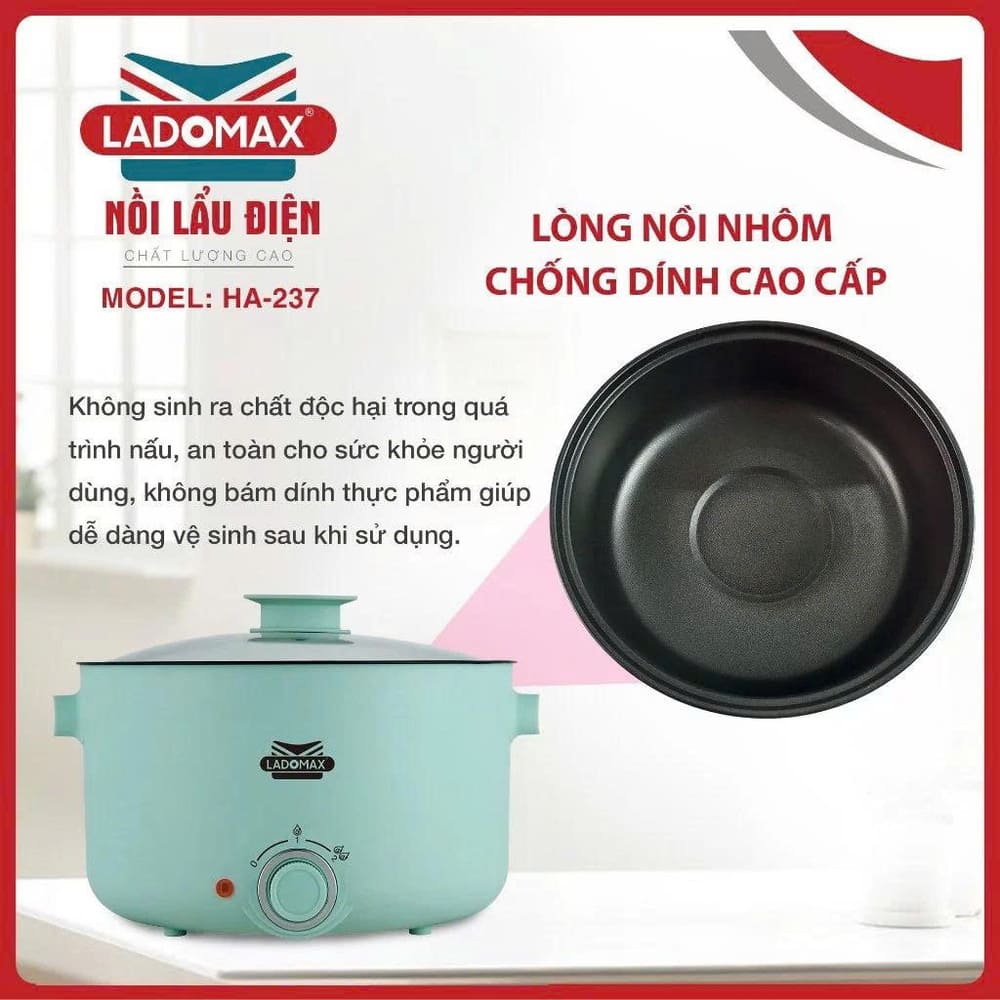 Tên sản phẩm: Nồi lẩu điện đa năng Ladomax 4 Lít HA-237