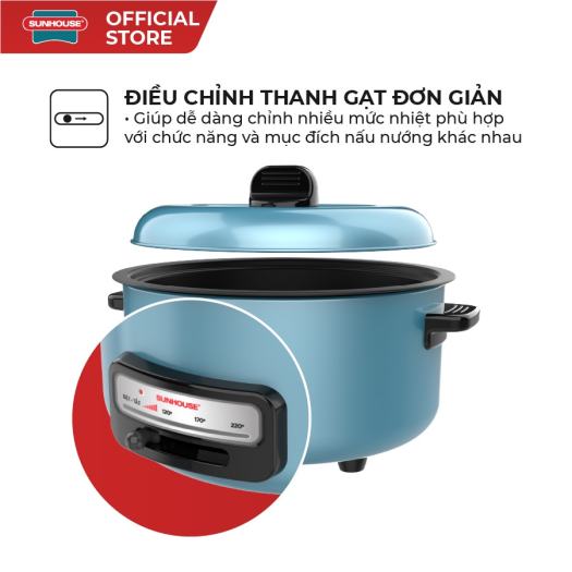 Nồi có nhiều mức nhiệt phù hợp với chức năng và mục đích nấu nướng khác nhau, được điều chỉnh bằng thanh gạt đơn giản.