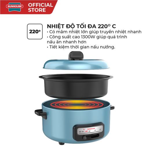 Lẩu điện có một mâm nhiệt lớn giúp truyền nhiệt nhanh và đều, cùng công suất cao 1300W giúp nấu chín thức ăn nhanh chóng, tiết kiệm thời gian nấu nướng.