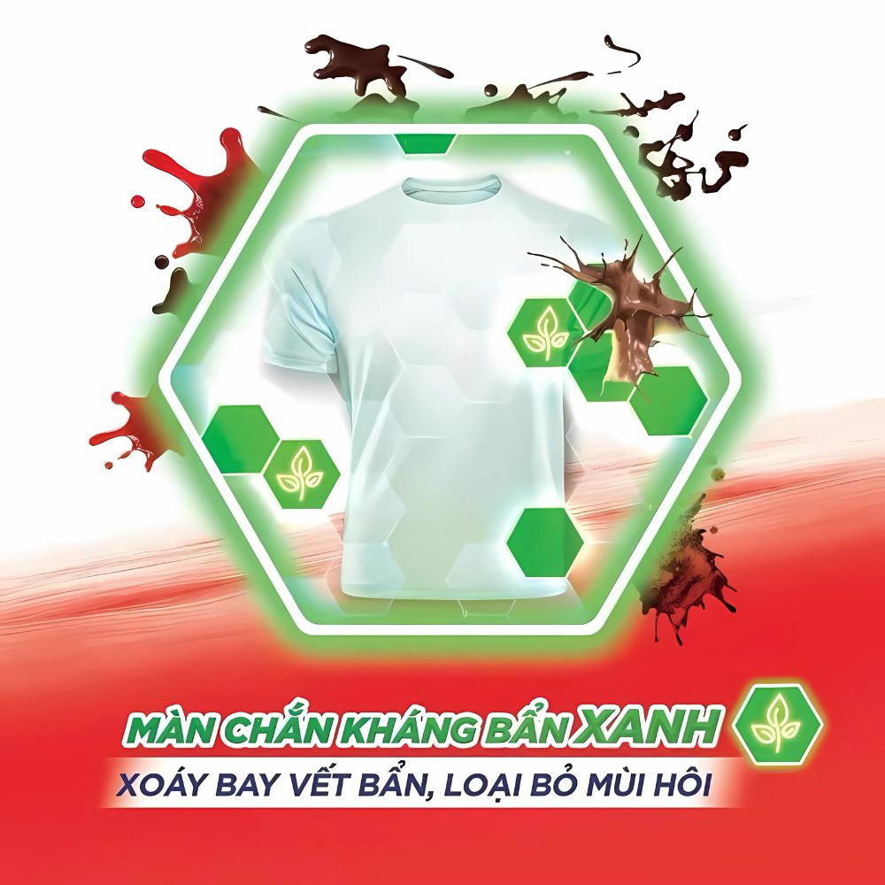 Giặt sạch vượt trội: Loại bỏ vết bẩn cứng đầu như dầu mỡ, bùn đất, vết thức ăn.
