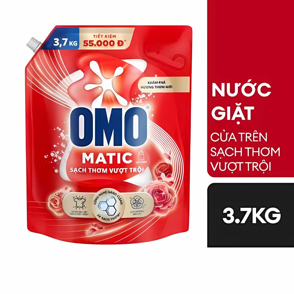 Nước Giặt OMO Matic Cửa Trên Sạch Thơm Vượt Trội Túi 3.7kg – Giặt Sạch Sâu, Lưu Hương Lâu