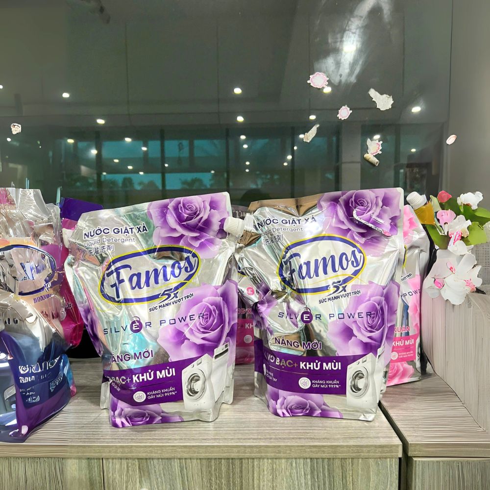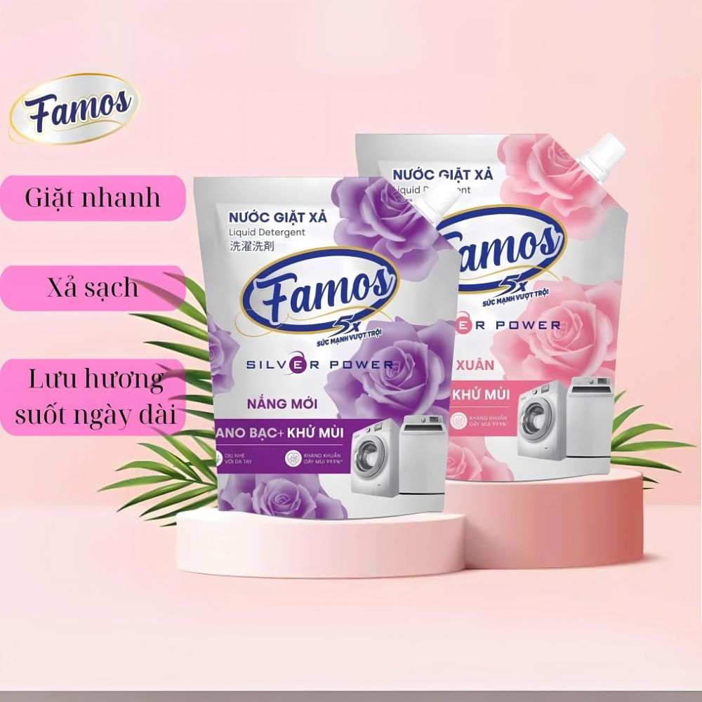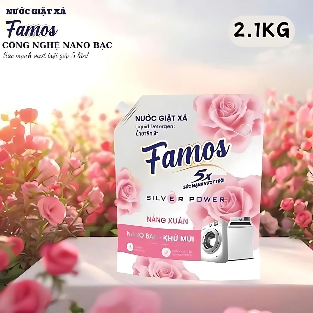 Bạn đang tìm kiếm một giải pháp giặt giũ tiện lợi, sạch sâu mà vẫn dịu nhẹ với làn da? Nước giặt xả Famos 2.1kg ứng dụng công nghệ Nano bạc diệt khuẩn hiện đại, vừa giúp quần áo thơm lâu, vừa diệt sạch vi khuẩn và mùi hôi bám trên sợi vải – lựa chọn hoàn hảo cho gia đình hiện đại.