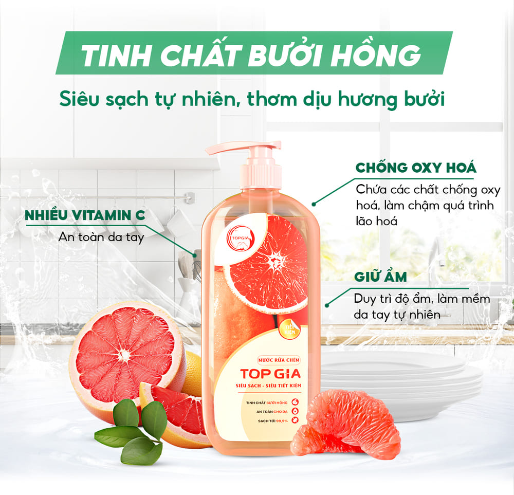 Công dụng: Làm sạch dầu mỡ, khử mùi tanh, an toàn cho da tay