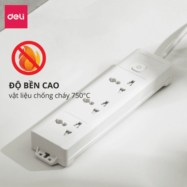 Ổ cắm điện Deli ET401 với thiết kế gọn gàng, 3 ổ cắm tiện lợi, phù hợp cho nhiều thiết bị điện cùng lúc. Chất liệu nhựa ABS cách điện, chịu nhiệt tốt, kèm công tắc an toàn giúp bảo vệ thiết bị và người dùng trong quá trình sử dụng.