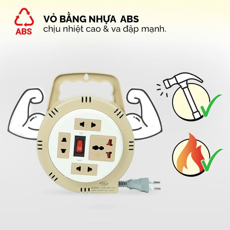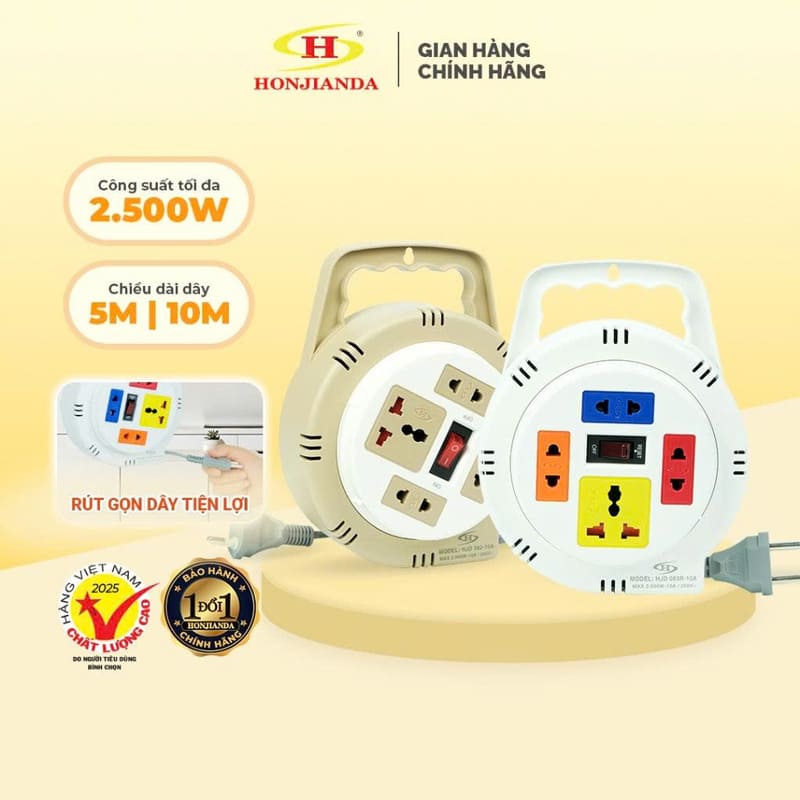 Tên sản phẩm: Ổ cắm điện tròn quay tay kéo dây 5m HJD 082-10A