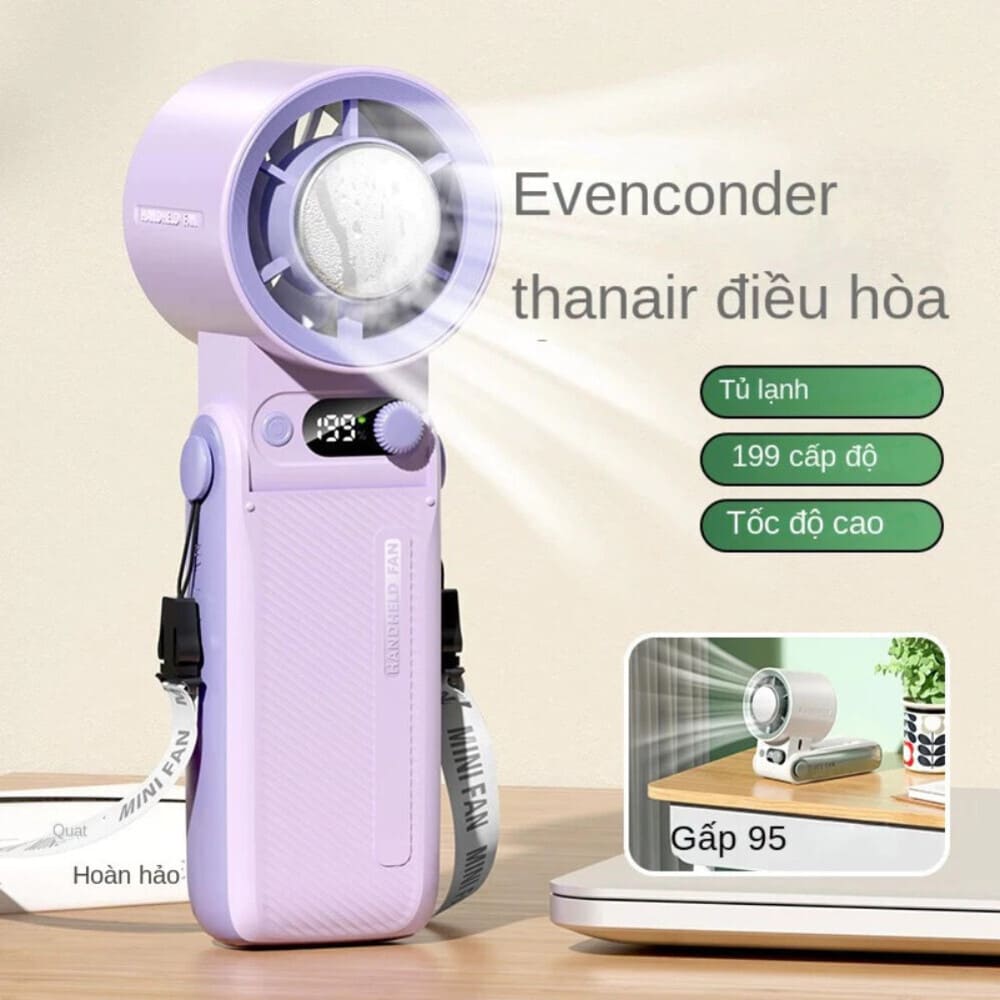 Trải nghiệm sự tiện lợi và mát mẻ mọi lúc mọi nơi với Quạt cầm tay pin 6000mAh 199 cấp độ gió. Thiết kế thông minh 3 in 1 đa năng: có thể dùng như quạt cầm tay, quạt để bàn hoặc quạt treo, mang lại sự linh hoạt tối đa. Pin dung lượng lớn 6000mAh cho thời gian sử dụng lâu dài, kết hợp 199 cấp độ gió tùy chỉnh giúp làm mát nhanh chóng và êm ái.