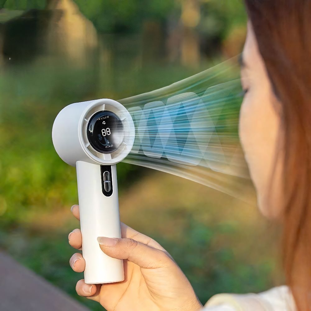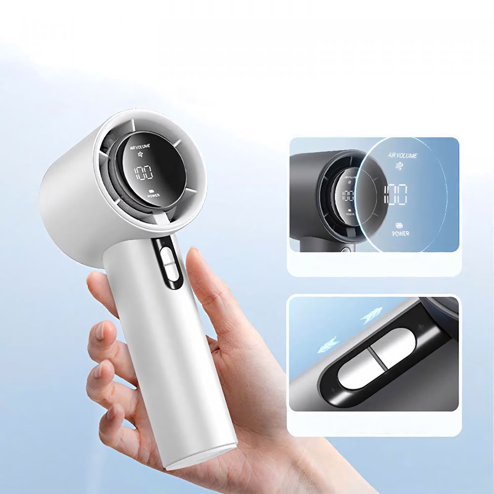 Quạt mini cầm tay tích hợp màn hình LED hiển thị tiện lợi, thiết kế nhỏ gọn nhưng cho lực gió mạnh mẽ, giúp làm mát nhanh chóng mọi lúc mọi nơi. Phù hợp mang theo khi đi học, đi làm, du lịch hoặc sử dụng tại nhà. 🌬️✨