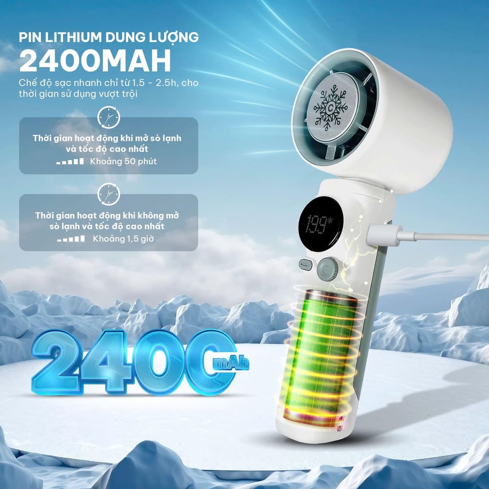 ✔️ Màn hình LED – hiển thị rõ ràng mức gió và dung lượng pin