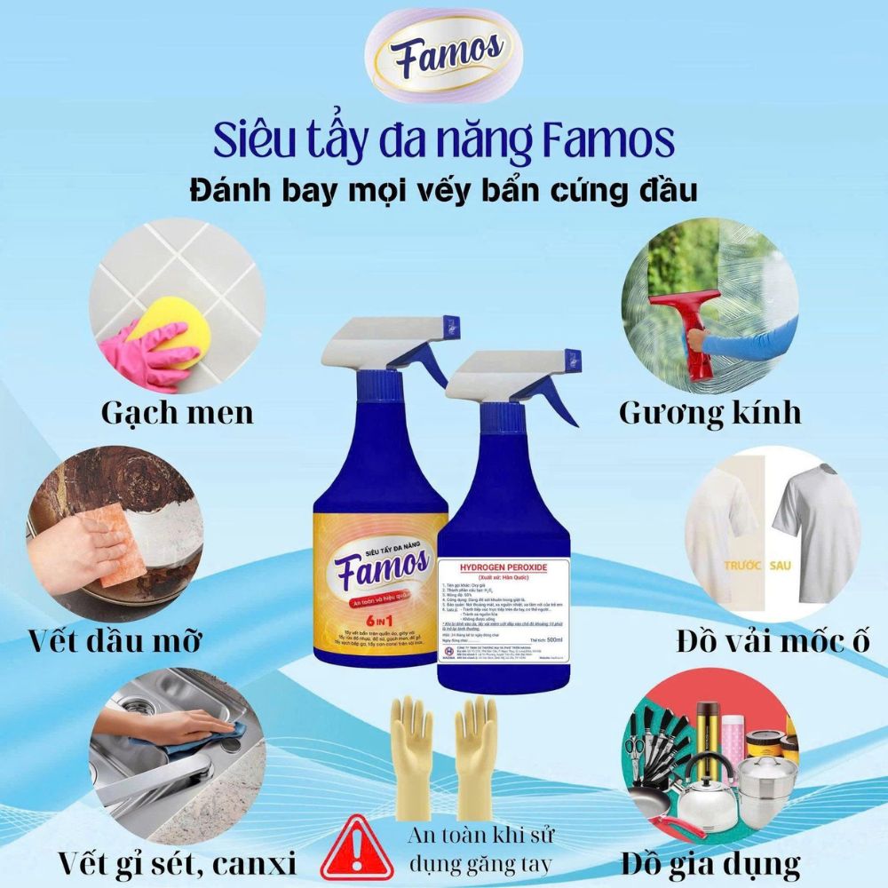 Bạn đang đau đầu vì các vết bẩn cứng đầu, dầu mỡ bám lâu ngày hay các mảng ố vàng trong phòng tắm, nhà bếp, kính, gạch men? Hãy để siêu tẩy đa năng Famos trở thành "trợ thủ đắc lực" cho bạn trong công cuộc dọn dẹp, giúp tiết kiệm thời gian, công sức mà vẫn mang lại hiệu quả làm sạch vượt trội.