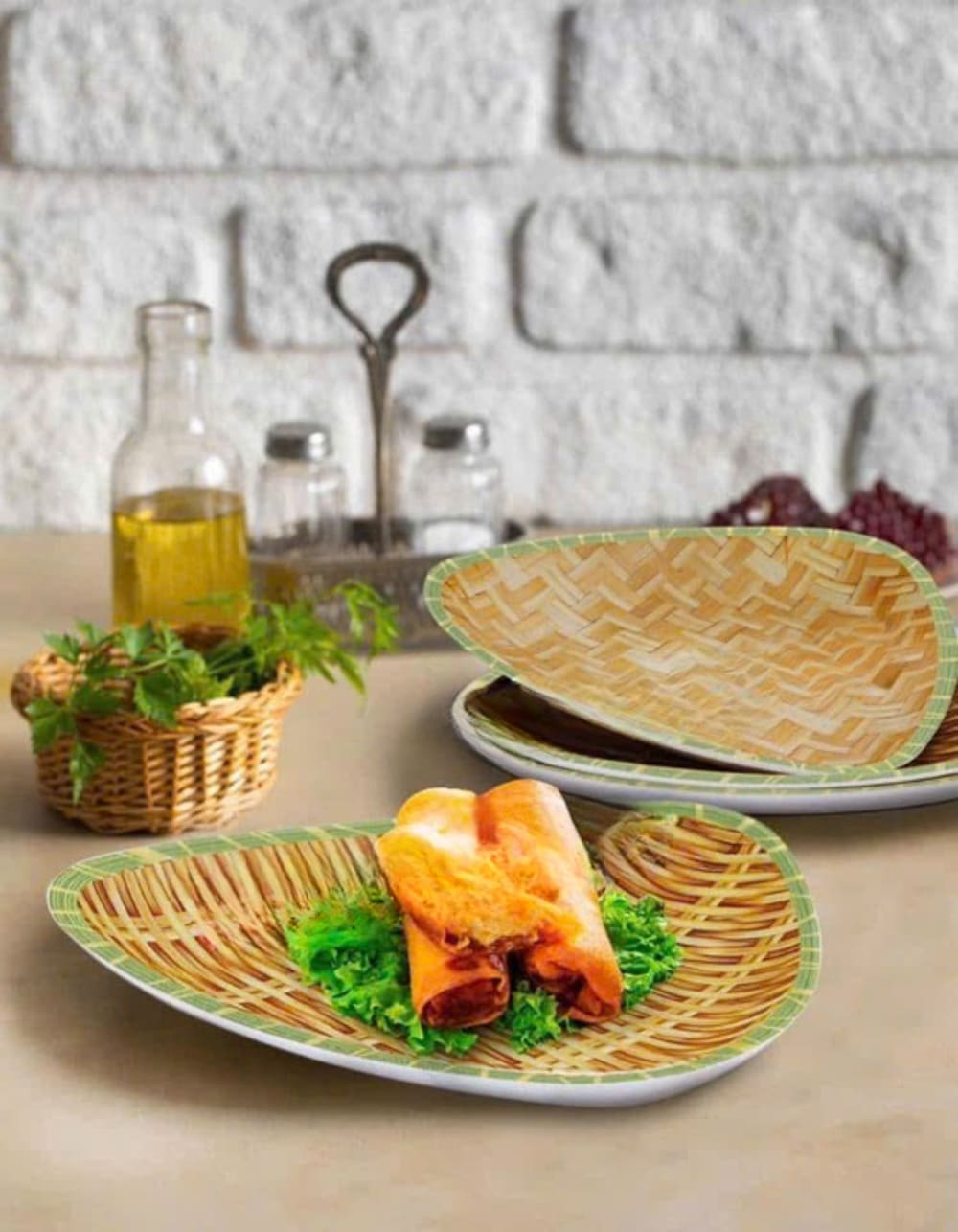 Tên sản phẩm: Set 2 đĩa nhựa phích giả mây hình tam giác